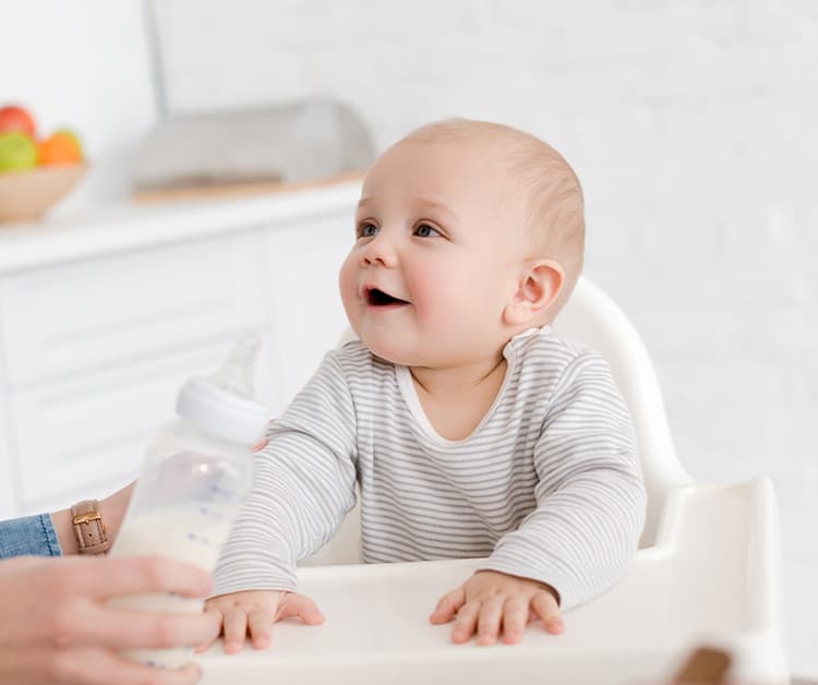 Choose a formula that is patterned after breast milk, with balanced nutrition and DHA and ARA to support his brain and eye development. If he's 1 year or older, you can switch to a Toddler drink that supports his development with nutrients that his solid food diet may lack.
