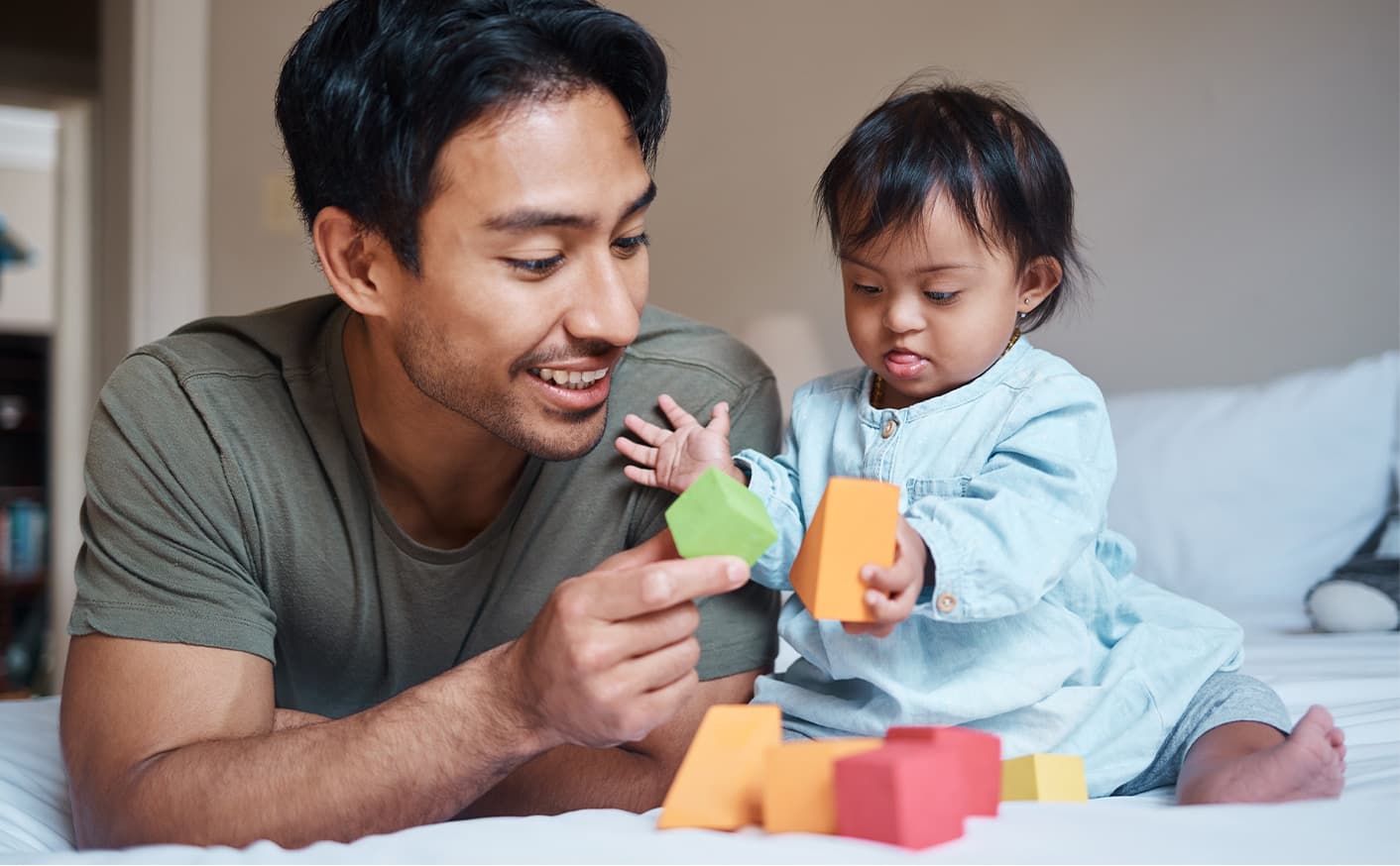 Children love to play with blocks! Give your child blocks that are small enough for your child's hands. Try building a simple tower. Let your child knock it down. What does your child do with the blocks? Stacking blocks will take time and your child will love doing this with you when older. Right now building and knocking down towers is a fun learning experience.